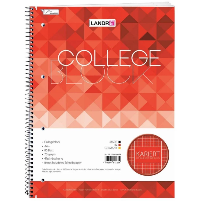 Collegeblock – DIN A4 – Lineatur 28 – kariert mit Doppelrand