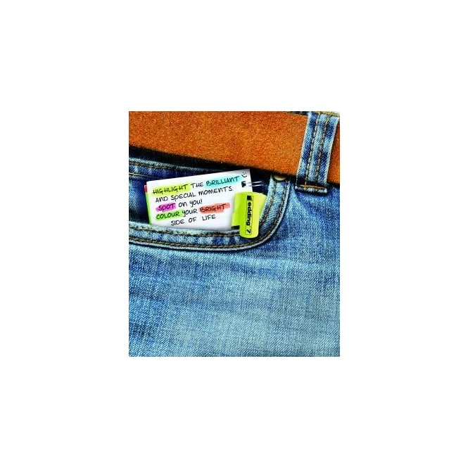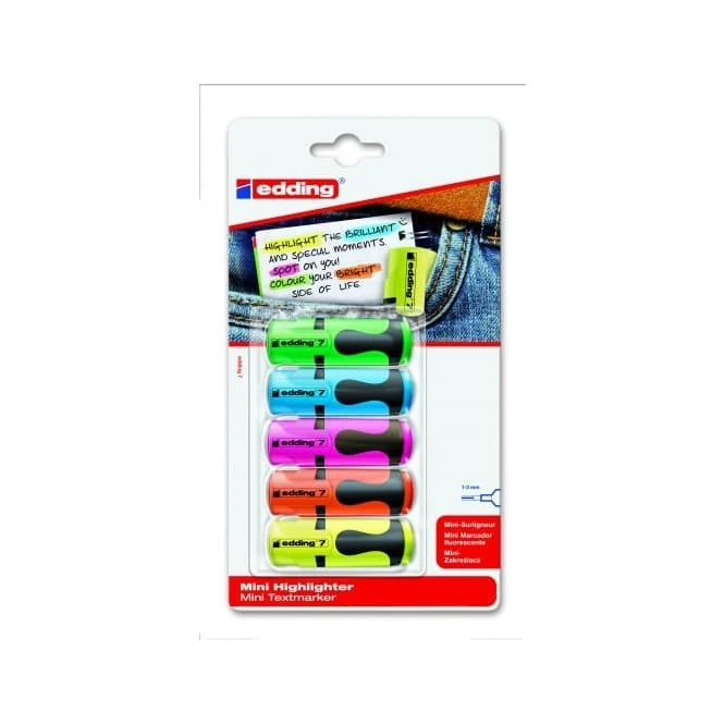 Kein Problem mit diesen tollen Textmarkern von Edding. Sie sind besonders gut geeignet zum leuchtkräftigen Markieren und Hervorheben von Textstellen und Notizen. Die Tinte ist auf Wasserbasis in Neonfarben mit hoher Farbbrillanz. Die Textmarker überzeugen durch ihr praktisches Mini-Format mit Keilspitze, wodurch sie perfekt in jede Hosentasche und jedes Mäppchen passen.
