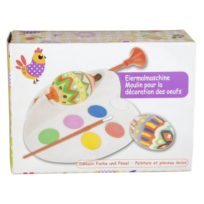 - Lieferumfang: 1 Set, bestehend aus Eiermalmaschine, Farben und Pinsel