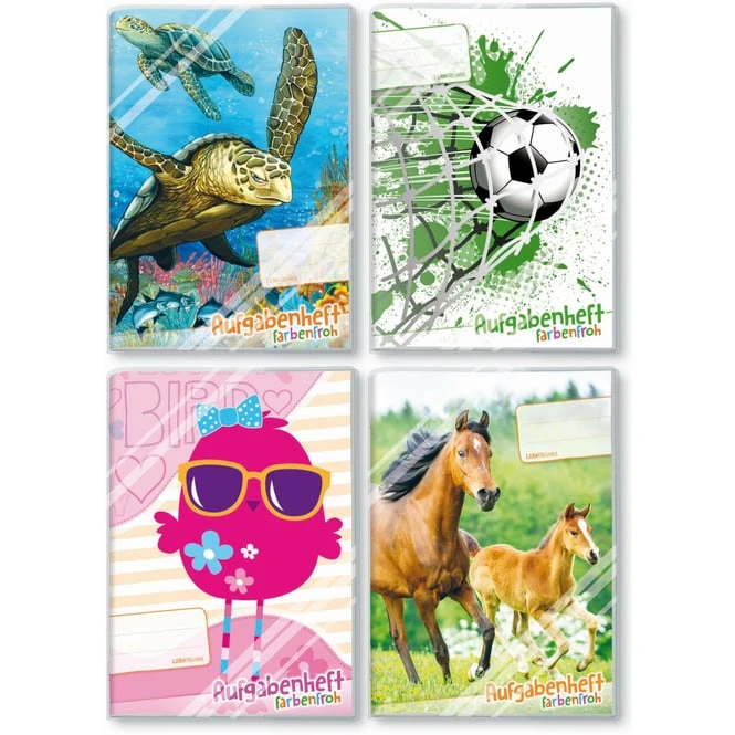 - Designs: Schildkröte, Fußball, Vogel, Pferde
