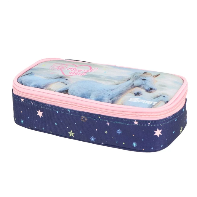 Schüleretui – Weisse Pferde – blau / rosa