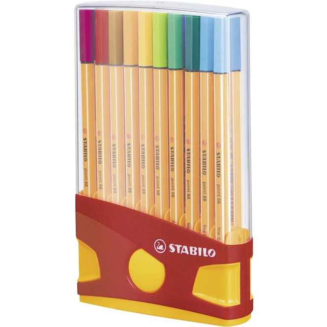 Sehr praktisch verpackt in einer Klappbox sind die Fineliner STABILO point 88. Die Box beinhaltet 20 Farben.
