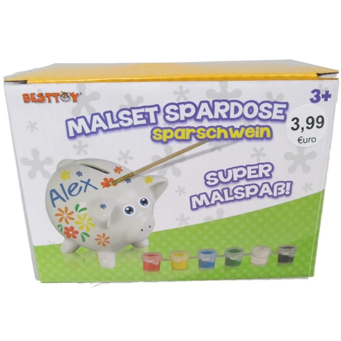 - Inhalt: 1 Terrakotta-Sparschwein, 6 Farben, 1 Pinsel