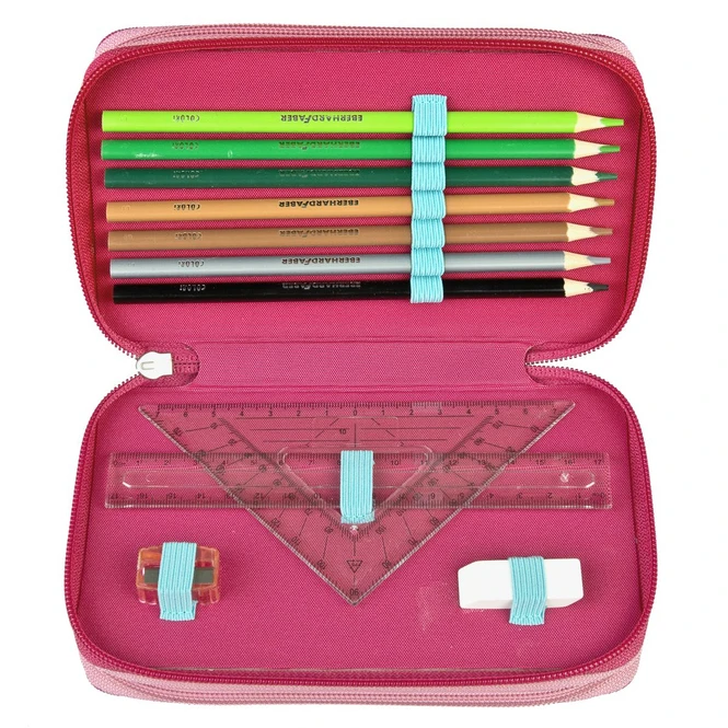 - Lieferumfang: 1 Federmäppchen – 3 Fächer mit Inhalt