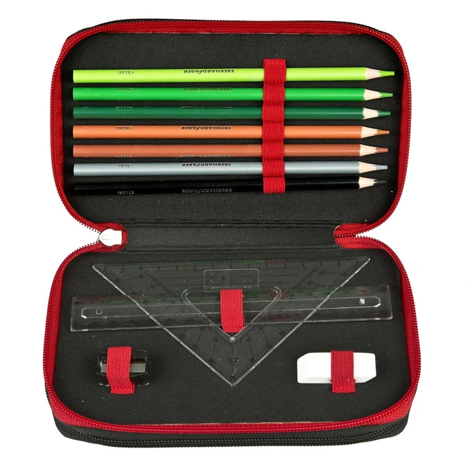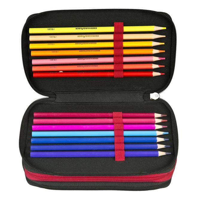 - Lieferumfang: 1 Federmäppchen – 3 Fächer mit Inhalt