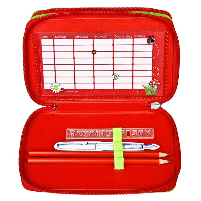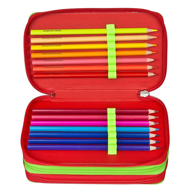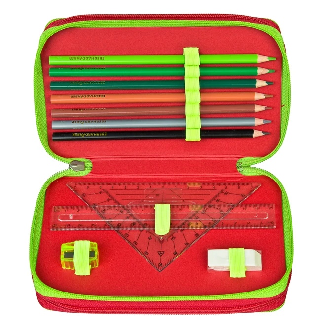 - Lieferumfang: 1 Federmäppchen – 3 Fächer mit Inhalt